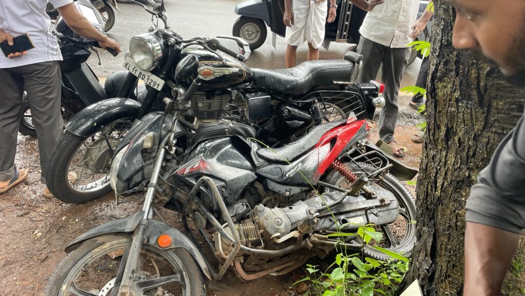 വെള്ളിമാട്കുന്ന് : ഈസ്റ്റ് വെള്ളിമാട്കുന്ന് എസ്. ബി. ഐ ബാങ്കിന് അരികിലെ കൂർത്താട്ടിൽ അഭിലാഷി ൻറെ വീടിൻ്റെ ഗെയിറ്റി ന് സമീപം നിറുത്തിയിട്ട ബൈക്കുകൾ വീട്ടുടമ ചിലത് തോട്ടിലേക്കും ബാക്കിയുള്ളവ ചവിട്ടി തള്ളിയിട്ട് കേട് വരുത്തിയും വീട്ടുടമയുടെ പരാക്രമം . നാട്ടുകാർ ഓടിയെത്തു മ്പോഴത്തേ ക്കും ഇയാൾ കാർ എടുത്ത് കോഴിക്കോട് ഭാഗത്തേക്ക് ഓടിച്ചു പോയി. പ്രദേശത്ത് ഒരു സ്ത്രീ മരണപെട്ടതിനെ തുടർന്ന് നിരവധി പേർ ബൈക്കി ലെത്തി മരണ വീട് സന്ദർശി ക്കുന്നതിനി ടെയാണ് പരാക്രമം . കുന്ദമംഗലം വരട്ട്യാ ക്കൽ സ്വദേശി അബ്ദുറ ഹിമാൻ കുട്ടിയുടെ ടി.വി. എസ് ജൂപിറ്റർ ഇയാൾ തോട്ടിലേക്ക് എടുത്തറി യുകയും ബാക്കിയുള്ള വ ചവിട്ടി തള്ളിയിടുകയുമായി രുന്നു. മുമ്പും ഇയാൾ ഇത്തരത്തി ൽ ഇന്നോവ വാഹനം അടക്കം കേടുവരു ത്തിയിട്ടുണ്ട് നാട്ടുകാരു ടെയും ടൂവിലർ ഉടമകളുടെ യും പരാതി യുടെ അടിസ്ഥാന ത്തിൽ ചേവായൂർ പോലീസ് സ്ഥലത്തെ ത്തിയിട്ടുണ്ട്. ഇന്ന് ഉച്ചക്കാണ് സംഭവം