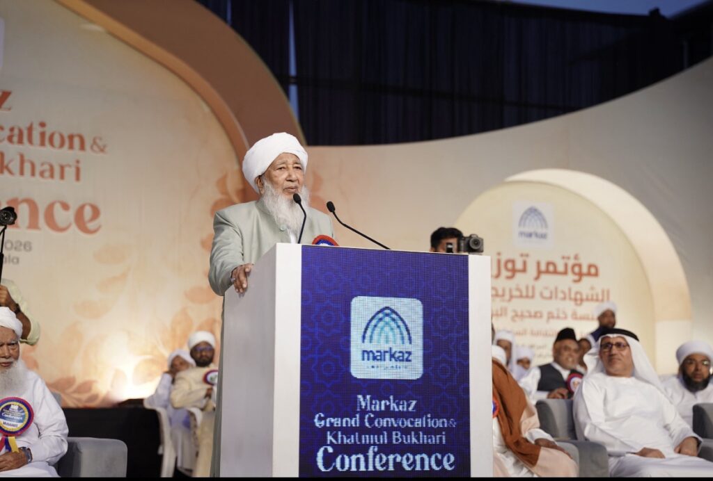 ഫോട്ടോ : മർകസ് സനദ് ദാന പൊതുസമ്മേളനത്തെ അഭിസംബോധന ചെയ്ത് ഇന്ത്യൻ ഗ്രാൻഡ് മുഫ്തിയും മർകസ് ജനറൽ സെക്രട്ടറിയുമായ കാന്തപുരം എ പി അബൂബക്കർ മുസ്ലിയാർ സംസാരിക്കുന്നു.