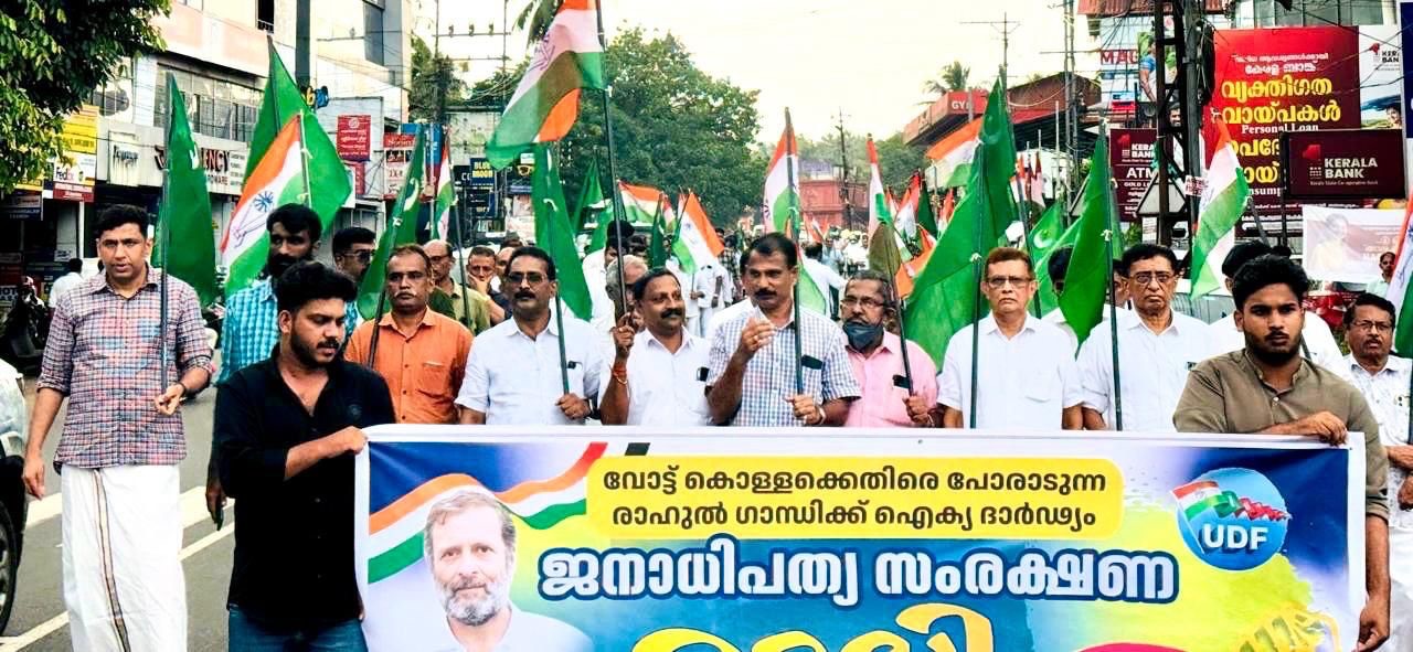 BJP -CPIMവോട്ട് കൊള്ളക്കെതിരെയും രാഹുൽ ഗാന്ധിക്ക് ഐക്യദാർദ്ധ്യo പ്രകടിപ്പിച്ച് കൊണ്ടും കുന്ദമംഗലം പഞ്ചായത്ത് UDF കമ്മറ്റി ജനാധിപത്യ സംരക്ഷണറാലിയും പൊതുയോഗവും നടത്തി