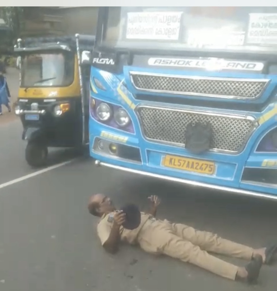 വിദ്യാർത്ഥികളെ കയറ്റി മാത്രം ബസ്സ് പോയാൽ മതിയെന്ന പോലീസ് നിർദ്ദേശം നിരസിച്ച ബസ്സിൻ്റെ മുമ്പിൽ കിടന്ന ഹോം ഗാർഡ് നാഗരാജ് താരമായി
