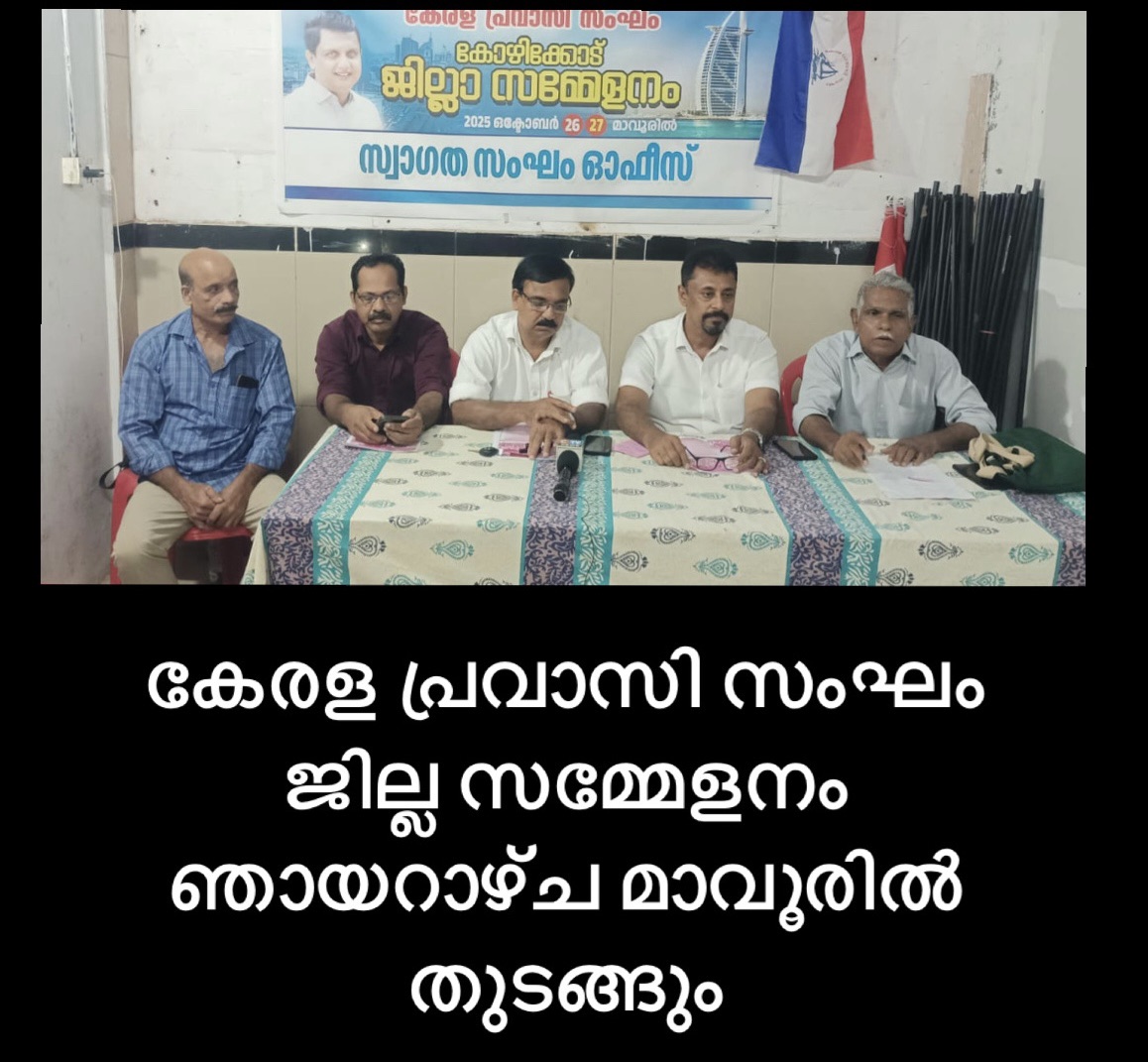 കേരളപ്രവാസിസംഘംജില്ലസമ്മേളനംഞായറാഴ്ചമാവൂരിൽതുടങ്ങും